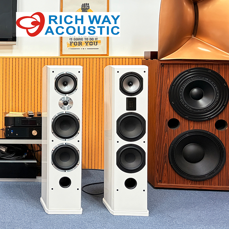 3 way floor standing HiFi speakers with ribbon tweeter in white piano paint